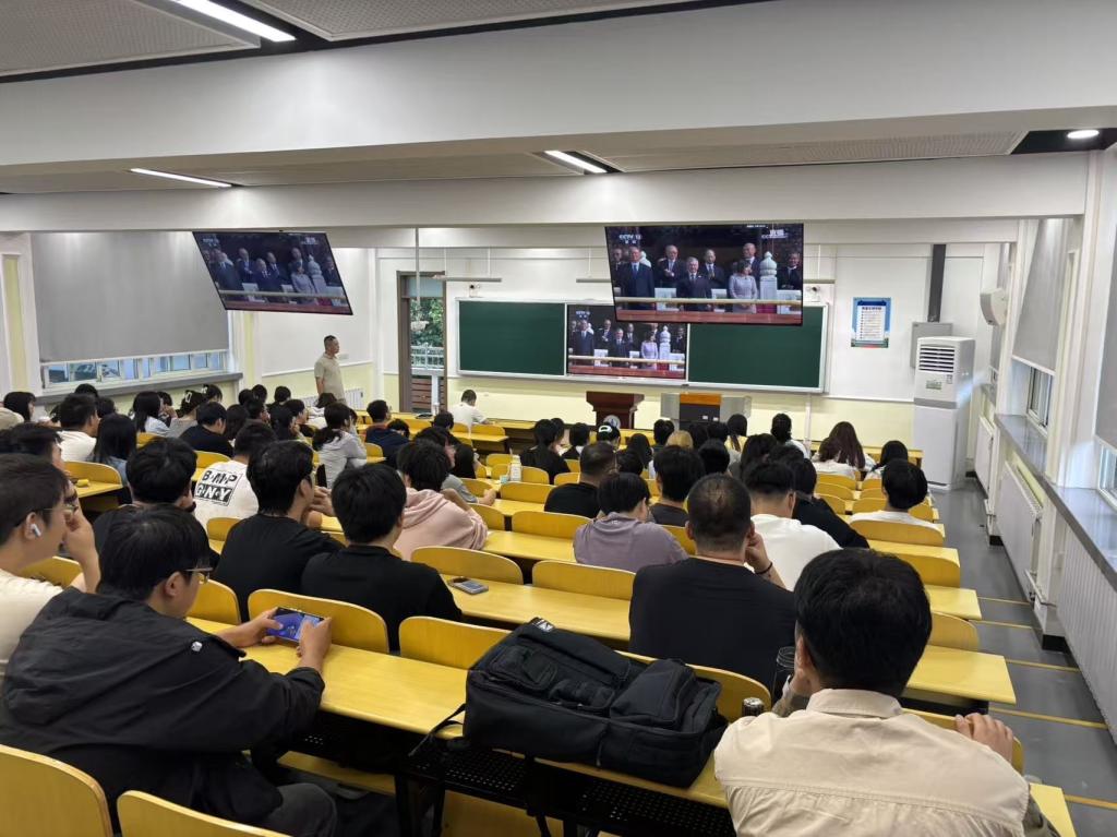 2025年9月3日9时,太阳集团tcy8722网站党委组织师生在学院会议室、学术报告厅、多媒体教室等多个场所集中收看纪念中国人民抗日战争暨世界反法西斯战争胜利80周年大会直播。