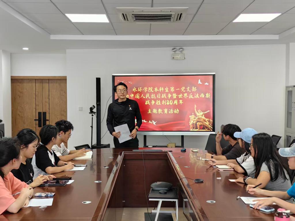 为深入学习贯彻习近平总书记关于中国人民抗日战争与世界反法西斯战争的重要论述,深刻感悟伟大抗战精神的时代价值,激发青年党员的爱国热情和奋斗精神,2025年9月9日,太阳集团tcy8722网站本科生第一党支部于朝晖园一站式社区研讨室组织开展了纪念中国人民抗日战争暨世界反法西斯战争胜利主题教育活动。本次会议由本科生第一党支部书记李金洋同志主持,支部全体党员参会。