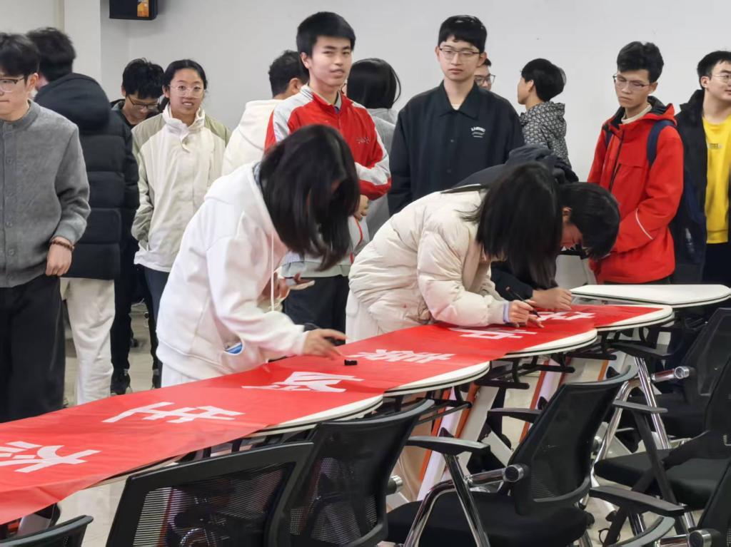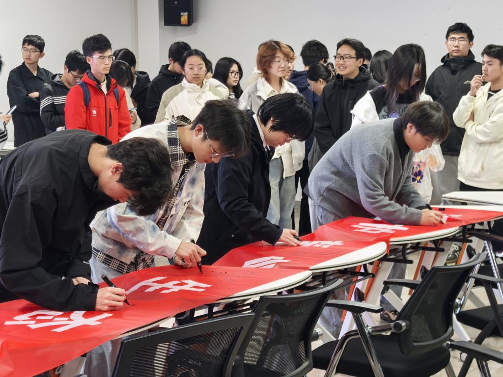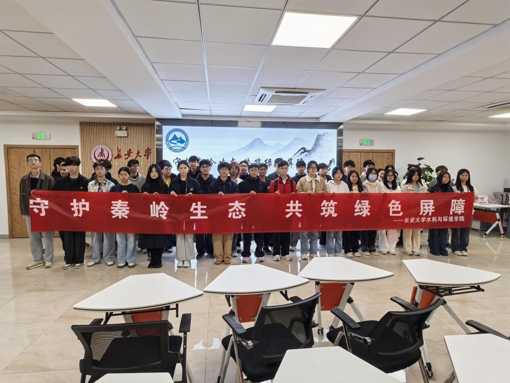在最后动员环节中,滕寅铭代表学生郑重宣读《秦岭自然生态保护倡议书》,并引导参会学生在“守护秦岭生态,共筑绿色屏障”横幅上庄严签字。每一句宣读内容都是对守护秦岭的郑重承诺,字字千钧;每一笔签名都凝聚着青年学子的生态担当,笔笔如诺。
