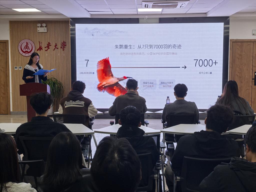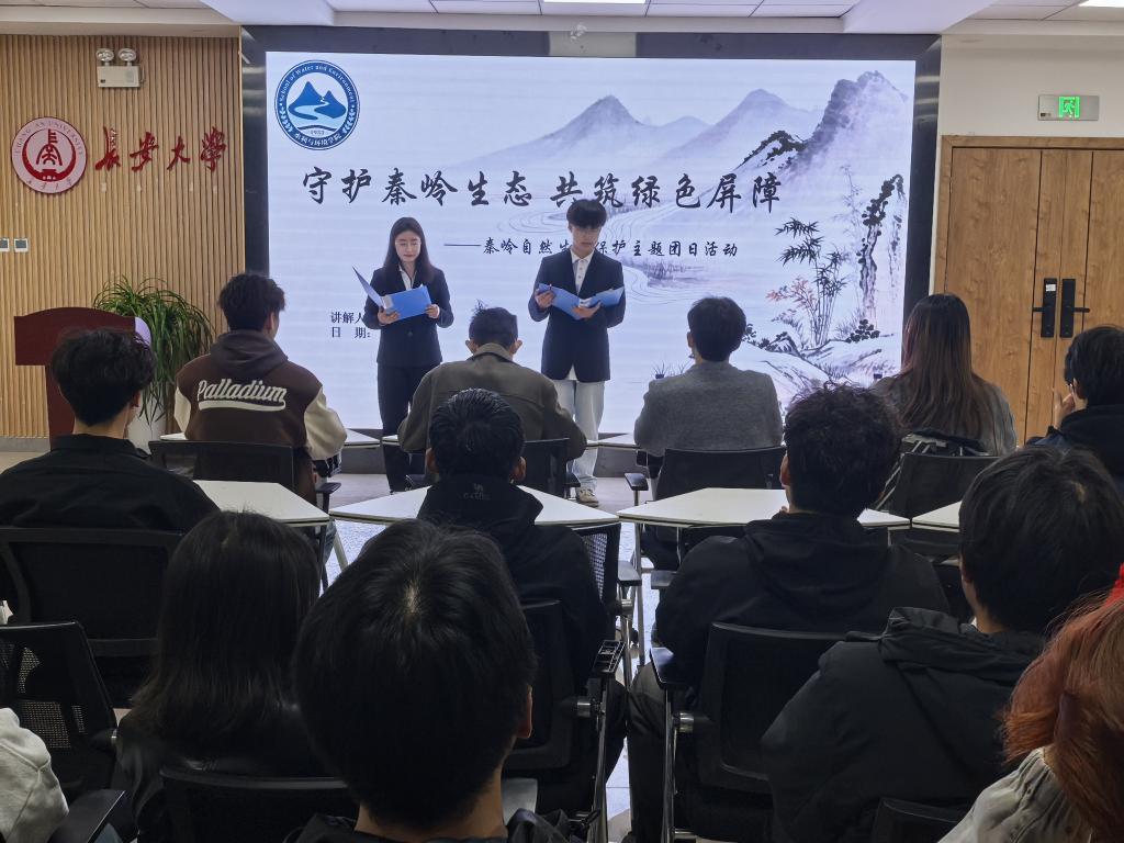 宣讲团赵梓萱从秦岭地理区位、生物多样性资源、生态屏障功能等方面进行系统阐释,以详实的数据和生动的视频案例,直观展现秦岭作为“中央水塔”“生物基因宝库”的独特价值,用镜头捕捉林海苍翠、溪流潺潺的自然之美,用数据记录珍稀动植物的自在栖息与生态守护者的坚守历程,用文字梳理当前秦岭生态保护面临的挑战与应对举措,帮助同学们深刻认识到生态保护的紧迫性与重要性。